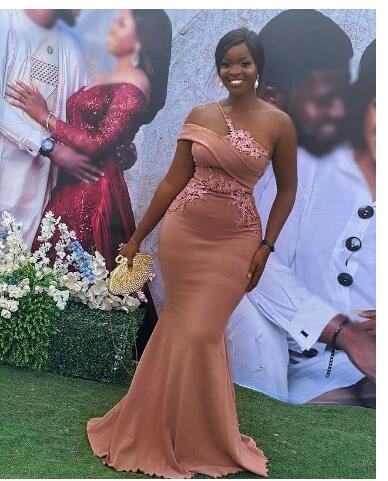 Mermaid Sexy Cheap Evening Dresses Lace Beaded Prom Dresses One Shoulder Formal Party Second Reception Gowns