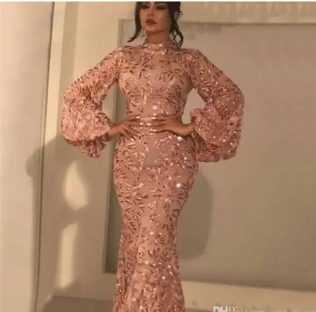Rose Gold Prom Dress Mermaid Formal Party Ball Gown Long Sleeve Afraic Girl Evening Dresses Deep Pageant Drseses Custom Made Plus Size