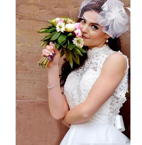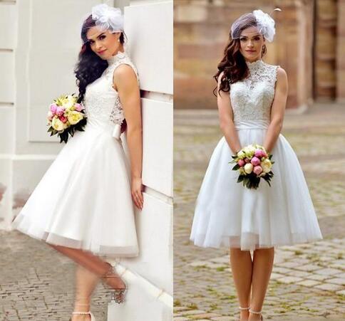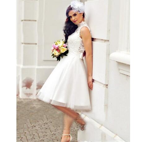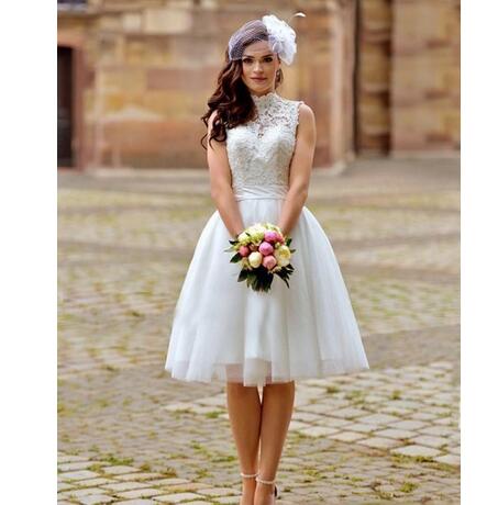 2018 Lace Wedding Dresses Short Boho Beach Bridal Gowns Cheap High Neck Backless Knee Length Bohemian Dress