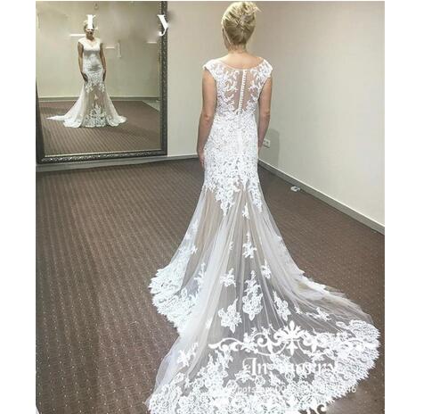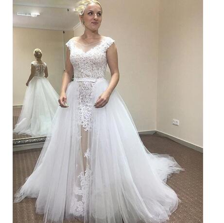 Detachable Skirt Mermaid Wedding Dresses Sheer Scoop Neck Illusion Back Wedding Gowns with Lace Appliques Overskirts Bridal Dresses