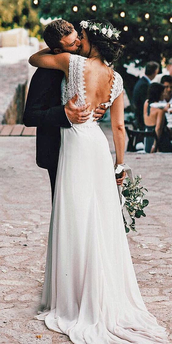 Simple A Line Chiffon Wedding Dresses Bohemian Beach Bridal Gowns