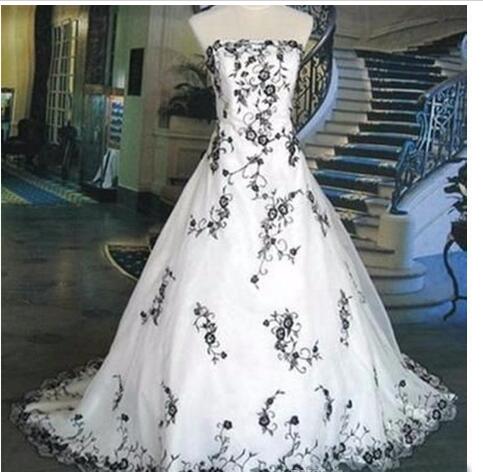 White and Black Wedding Dress Bridal Gowns Embroidery Real Image Vintage A Line Wedding Dress Strapless Custom Size Charming Top