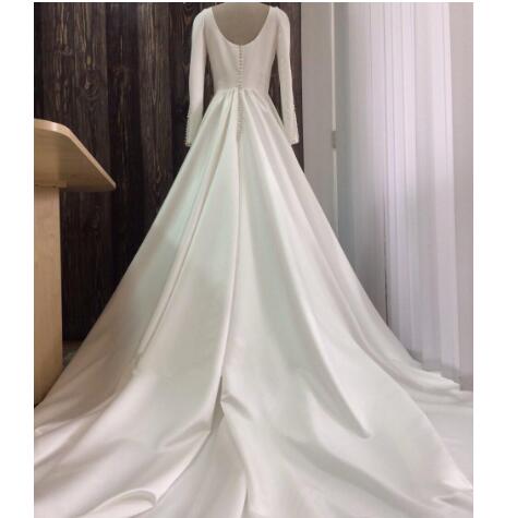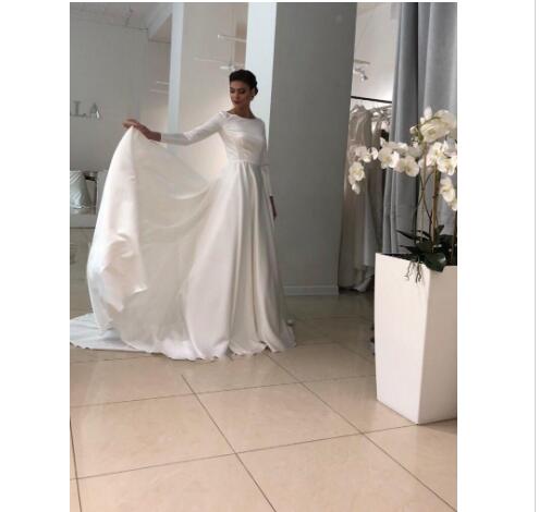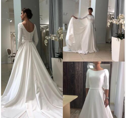 Wedding Dresses Boat Neck Half Sleeves Covered Button Back Sweep Train Stain Wedding Dresses Bridal Gowns Robe De Maria