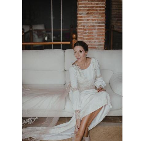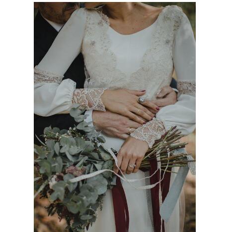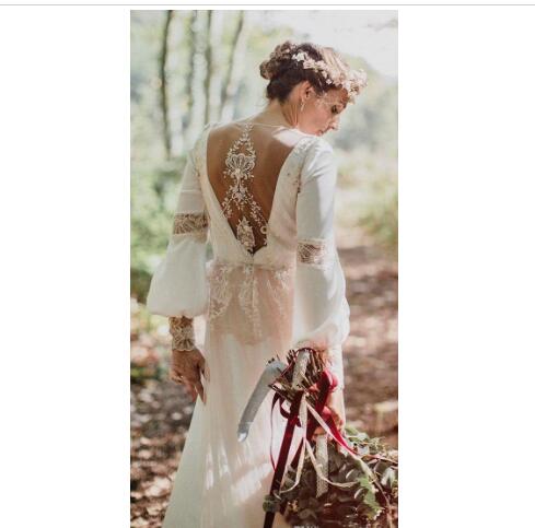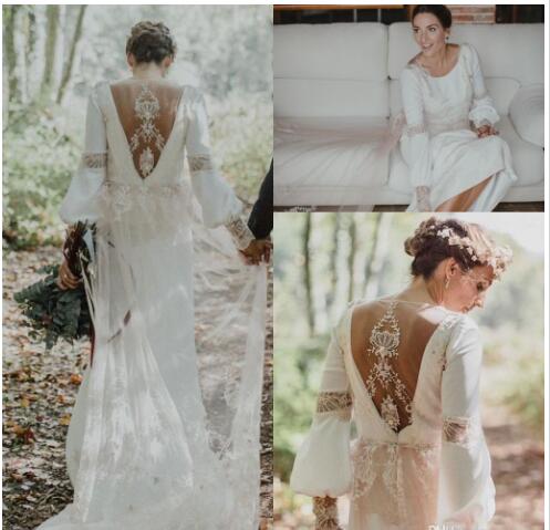 Vintage Boho Wedding Dresses Lace Appliques Illusion Backless Long Sleeves Jewel Neck Garden Bridal Gowns Wedding Dress