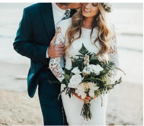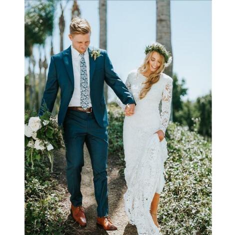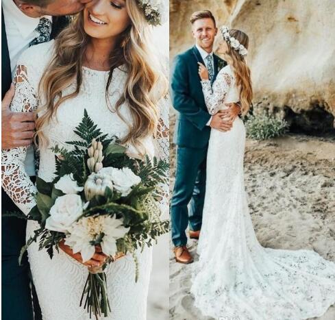 Country Style Full Lace Wedding Dresses Long Sleeves Boho Bridal Dresses Plus Size Court Train Garden Beach Wedding Gowns For Brides