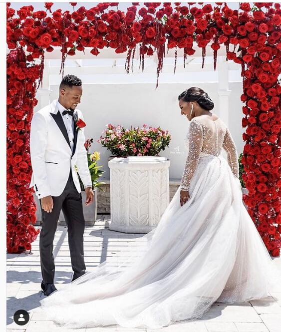 Sexy Ball Gown Sheer Long Sleeve Wedding Dresses Beading Crew Neck Puffy Bridal Gowns
