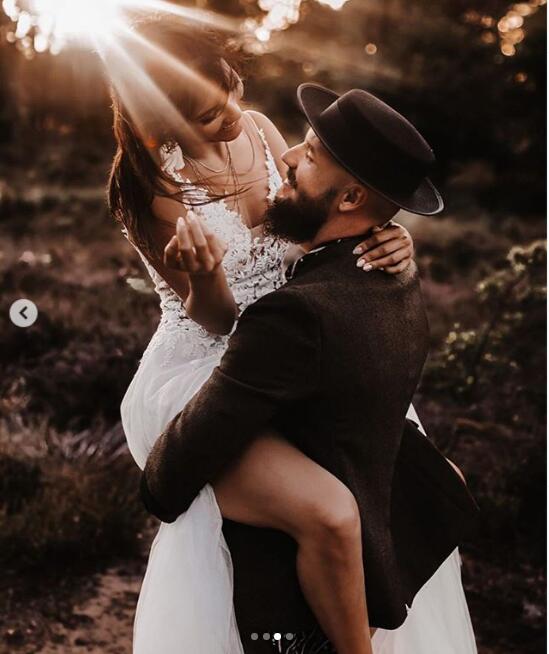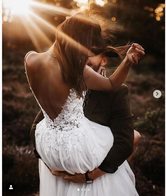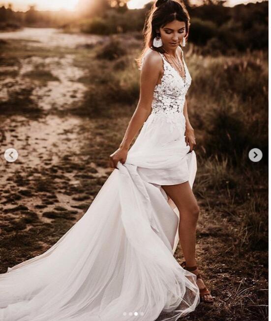 Simple A Line Bohemian Tulle Beach Wedding Dresses Sexy Deep V Neck Lace Side Slit Bridal Gowns
