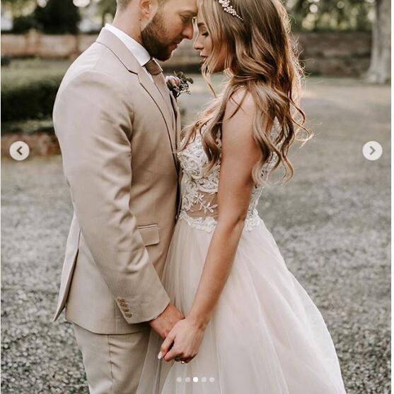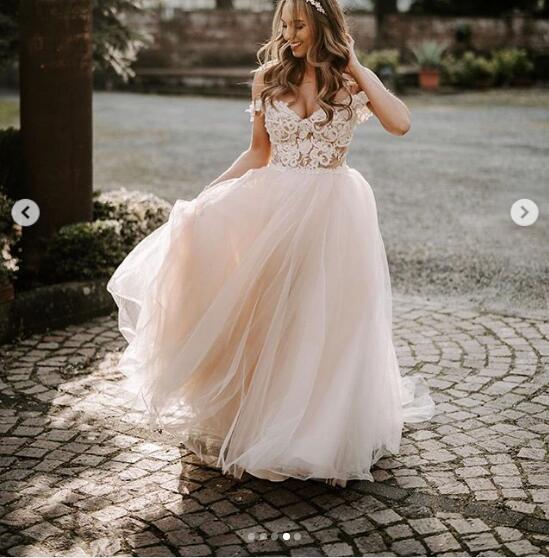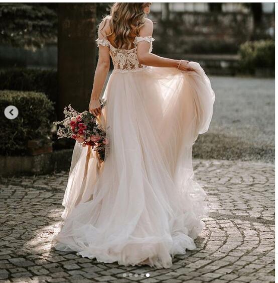 Simple A Line Garden Tulle Beach Wedding Dresses Off the Sholuder Lace Bridal Gowns