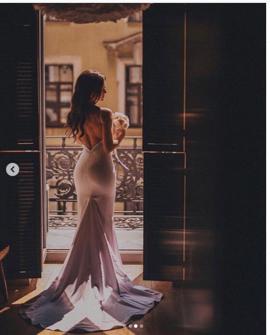 Simple Mermaid Backless Wedding Dresses Spaghetti Strap Bridal Gowns