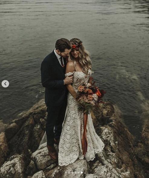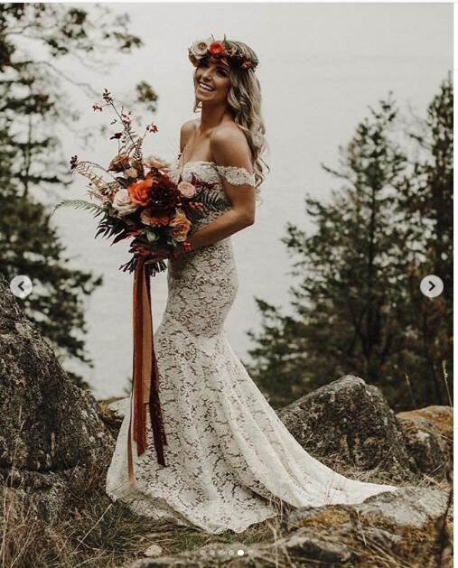 Garden Mermaid Lace Wedding Dresses Off the Shoulder Lace Beach Bohemian Bridal Gowns