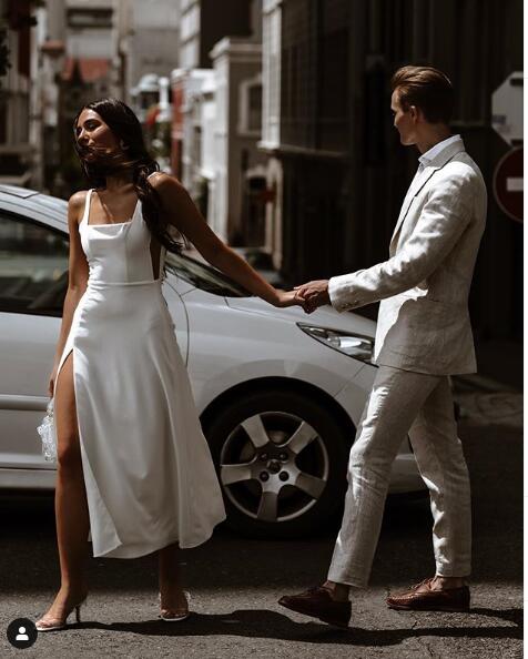 Beach Bohemia Wedding Dresses Bridal Gowns Side Slit Covered Button