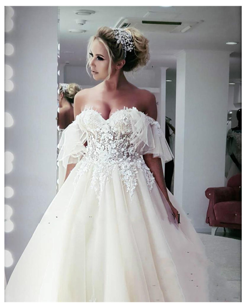 Princess Wedding Dress Sweetheart Appliqued 3D Flowers Bride Dress Tulle Backless Boho Wedding Dress Ball Gowns
