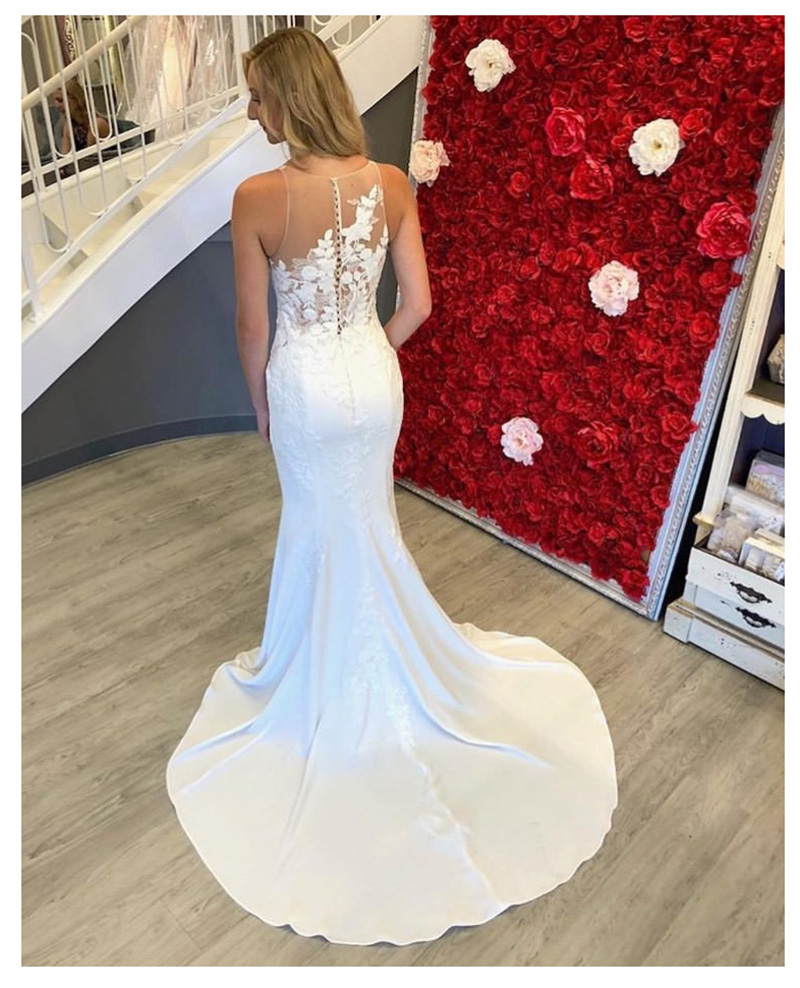 Lace Wedding Dress 3D Flowers Simple Mermaid Beach Bride Dress Custom Made Sexy Fairy Wedding Gown
