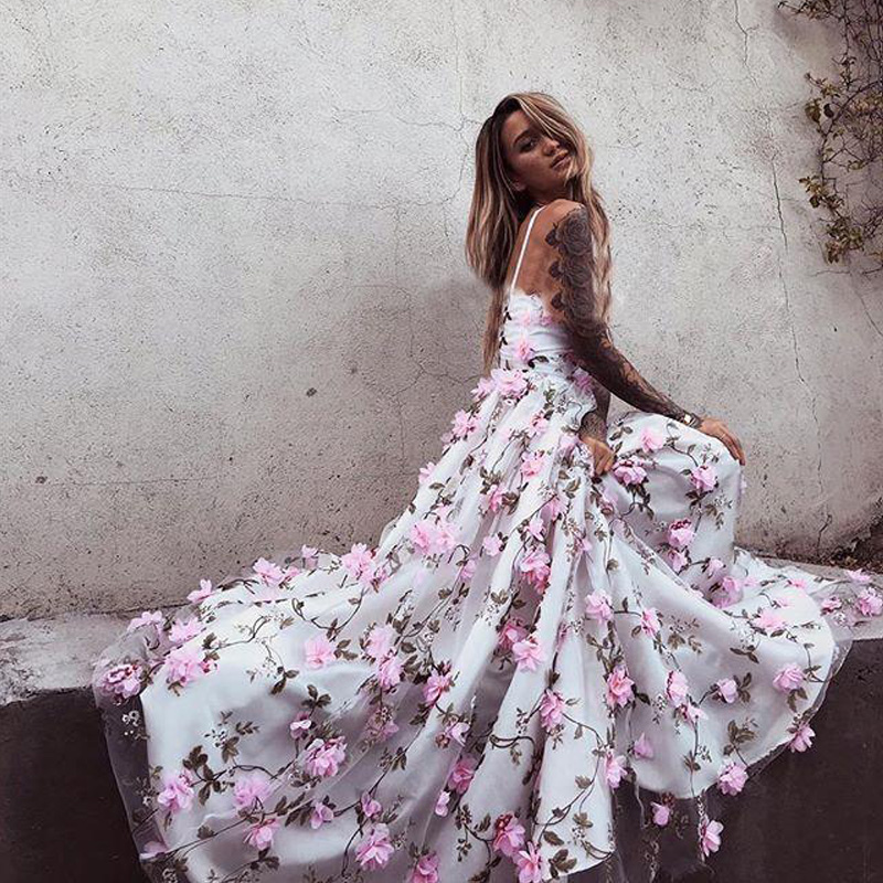 Boho Wedding Dresses with Flowers A-Line Spaghetti Strap Beach Wedding Gown Floral Bridal Gown Robe de Mariee