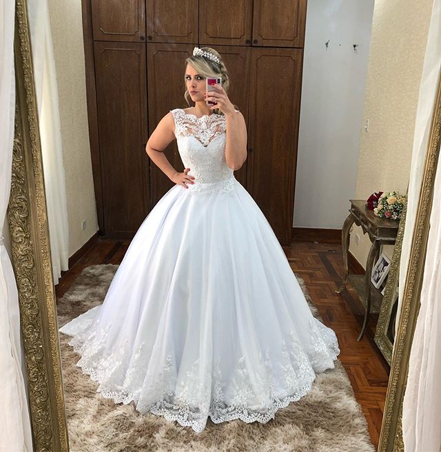 Vestido De Noiva Princesa Lace Wedding Dresses Sleeveless A Line Appliques Buttons Back Bridal Wedding Gowns Bride Dress