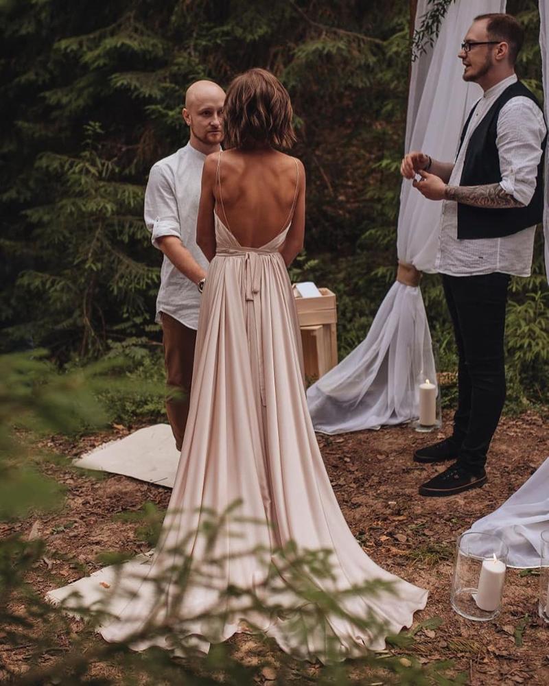 Countryside Stain Wedding Dress Sexy Front Split Backless Spaghetti Strap Vestido De Noiva Floor Length Wedding Gowns
