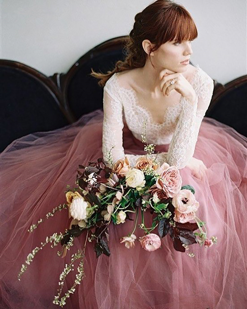 Boho Wedding Dresses A Line Dusty Pink Elegant Lace Beach Bride Dresses Train Elegant Wedding Boho Bridal Gowns