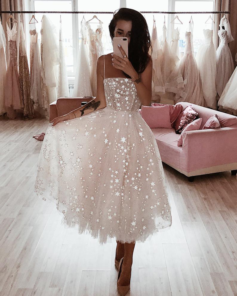 Short Wedding Dresses Spaghetti Straps Wedding Gowns Backless Sequins Lace Bride Dress vestido de noiva Boho