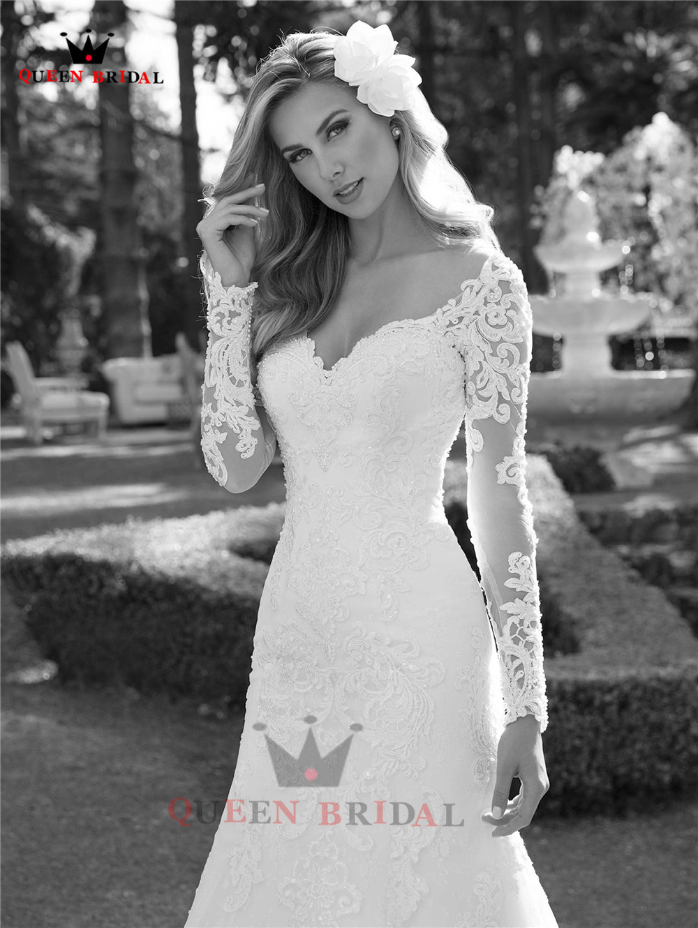 Sexy Wedding Dress Mermaid Long Sleeve Lace Pearls Appliques GorgesousNew Design Bride Dresses Custom Made