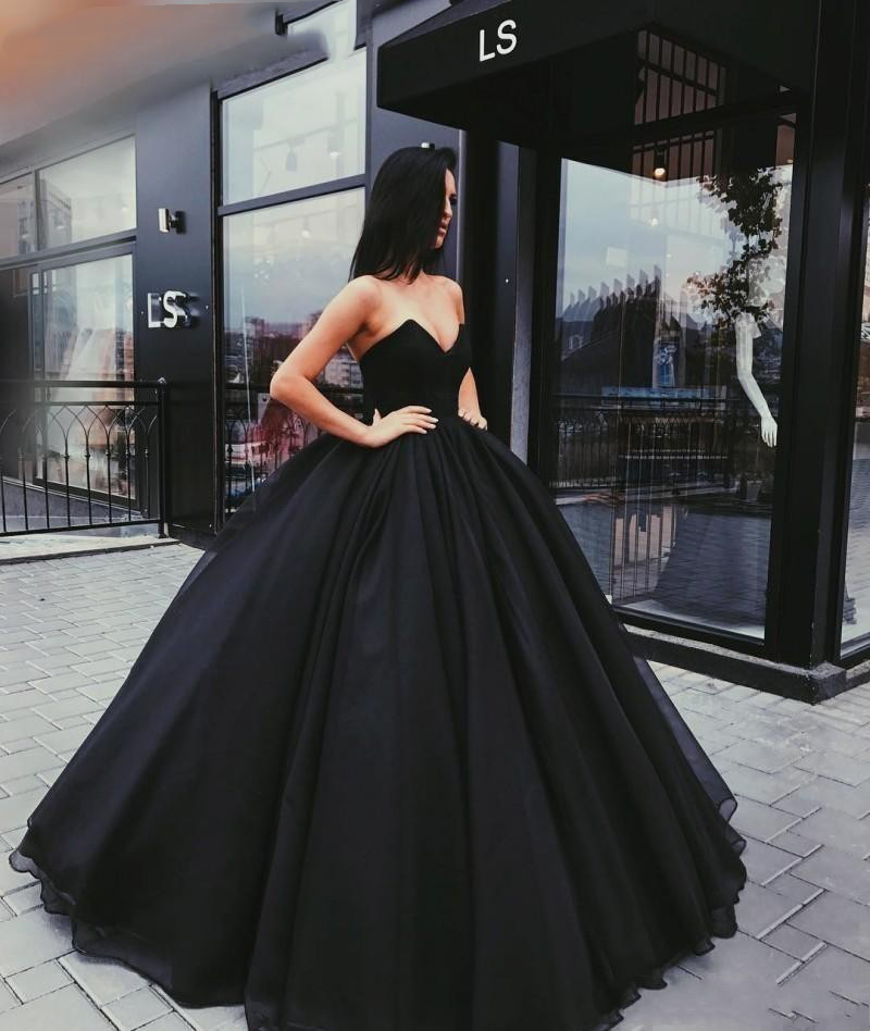 Gothic Black Wedding Dresses New Ball Gown Sweetheart Simple Bridal Dress Country vestido de noiva