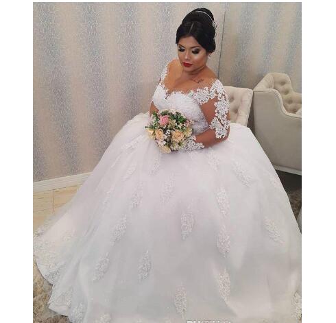 Plus Size Wedding Dress V Neck Lace Appliqued Beach Outdoor Bridal Dresses Long Sleeve Wedding Gowns Vestidos De Novia
