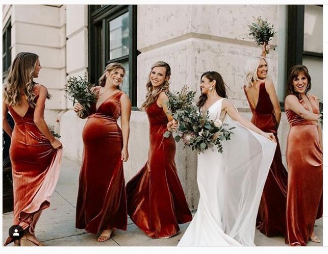 Elegant Mermaid Velvet Bridesmaid Dress Sexy Deep V Neck Prom Dresses