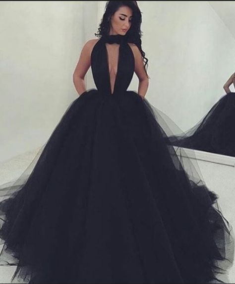 Sexy Prom Dress A-line Black Deep V-neck Evening Dress Tulle Long Prom Dresses Evening Gown