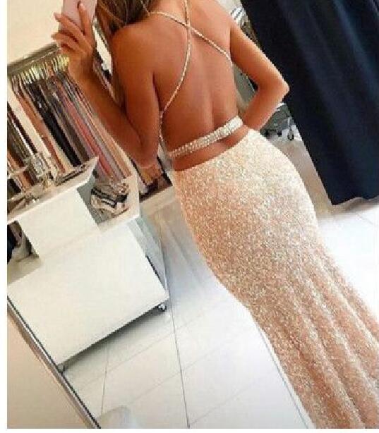 Luxury Bling Sparkle Prom Dress Evening Dress Mermaid Pink Sweetheart Sequins Lace Backless Long Prom Dresses Evening Dresses