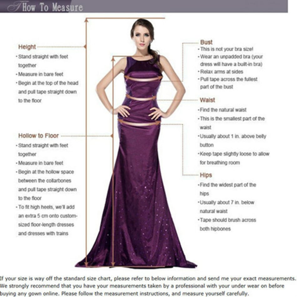We strongly recommend that you have your measurements taken by a professional before buying any gown online. Please follow the measurement instructions, and measure yourself carefully