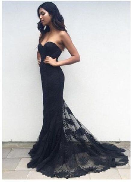 Elegant Mermaid Prom Dress Evening Dress Black Sweetheart Lace Long Prom Dresses Evening Dresses Party Dress
