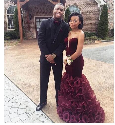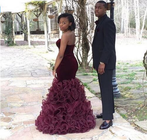 Black Girl Prom Dress New African Velvet Burgundy Royal Black Black Mermaid Prom Dresses Organza Ruffles Long Prom Party Dress