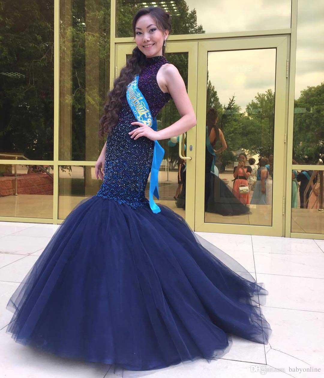 Dark Navy Prom Dress, Mermaid Prom Dress, Sexy Prom Dress, Floor-length Prom Dress, Sleeveless Prom Dress, Mermaid Evening Dress