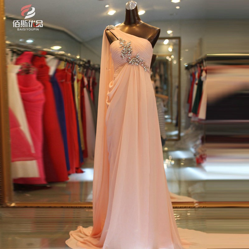 Elegant A Line Chiffon Crystal Long Prom Dress One Shoulder Sleeveless Floor Length Formal Party Evening Gowns Dresses