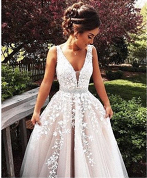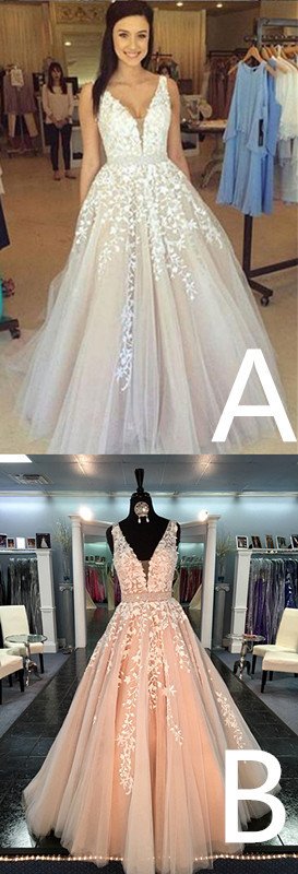 V Neck Long Sexy Prom Dress,A Line Wedding Dresses