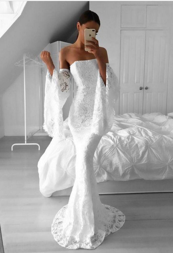 2018 Lace Prom Dress, Mermaid Prom Dress, White Long Prom Dresses Evening Dress Formal Dress