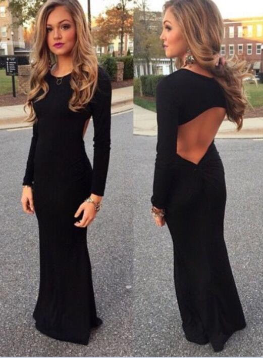 Black Prom Dress,Mermaid Prom Dress,Simple Prom Gown,Backless Prom Dresses,Sexy Evening Gowns,Evening Gown,Open Back Long Sleeves Dress For Teens