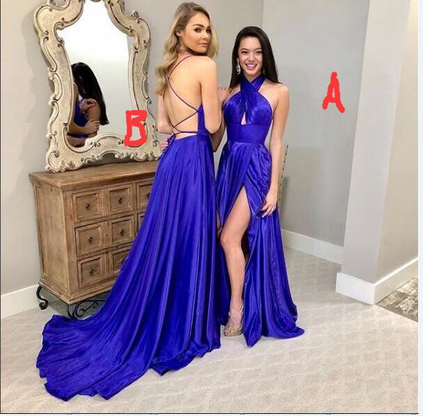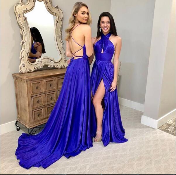 Sexy Royal Blue Prom Dress, Crisscross Neck Prom Dress, Long satin Prom Dresses Evening Dress
