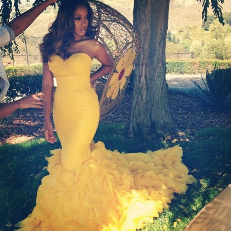 Sexy Prom Dress Evening Dress Yellow Mermaid Prom Dress Off The Shoulder Fitted Tiered Ruffles Court Train