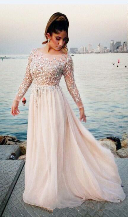 Sheer Long Sleeve Evening Dress Prom Dresses Party Dress Evening Gowns