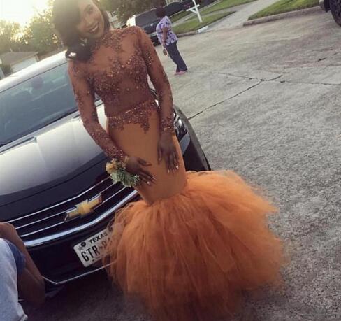 2018 African Long Sleeve Evening Dresses High Neck Illusion Mermaid Prom Dress Long Beads Sequins Custom made Aso Ebi Sexy Party Gowns