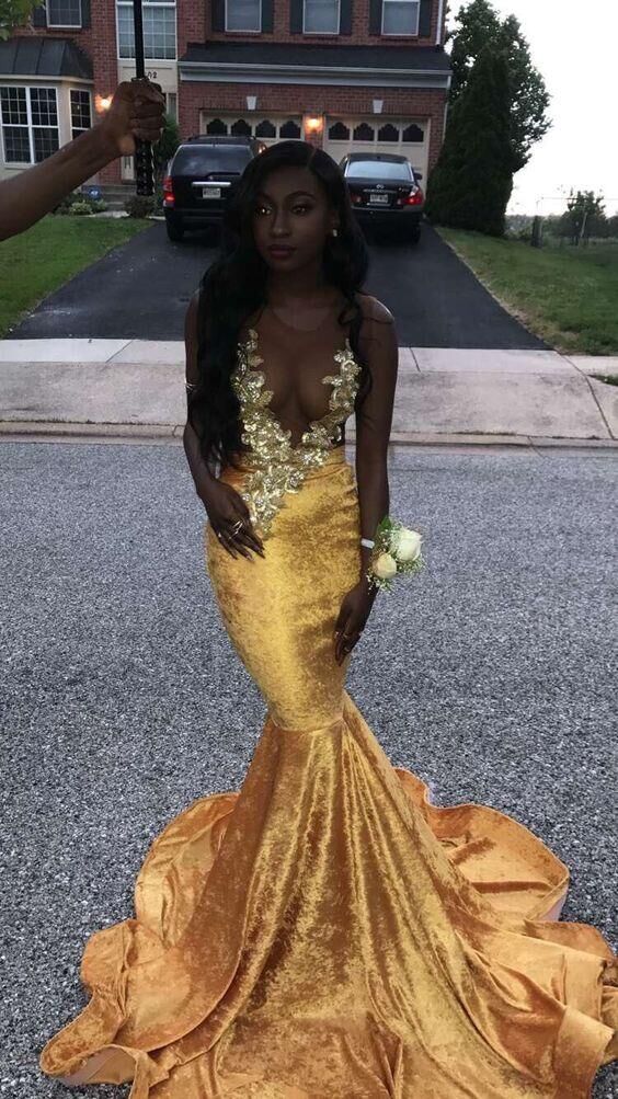 Mermaid Black Girl African Girl Prom Dresses Sheer Crew Neck Appliques Evening Formal Gowns
