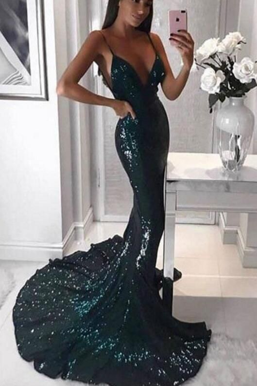 2018 Sequin prom dresses, Black Prom Dress,Sexy Prom Dress,spaghetti straps v neck prom gowns