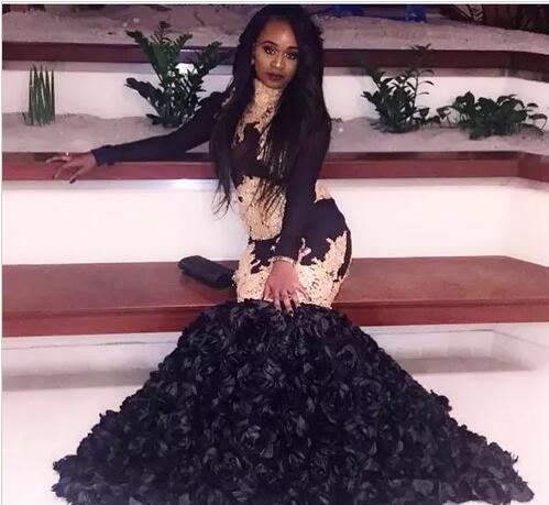2018 Sexy Black Girl Prom Dress, Black with Flowers Long Prom Dress Evening Dress, Formal Dress Prom Gown Evening Dresses