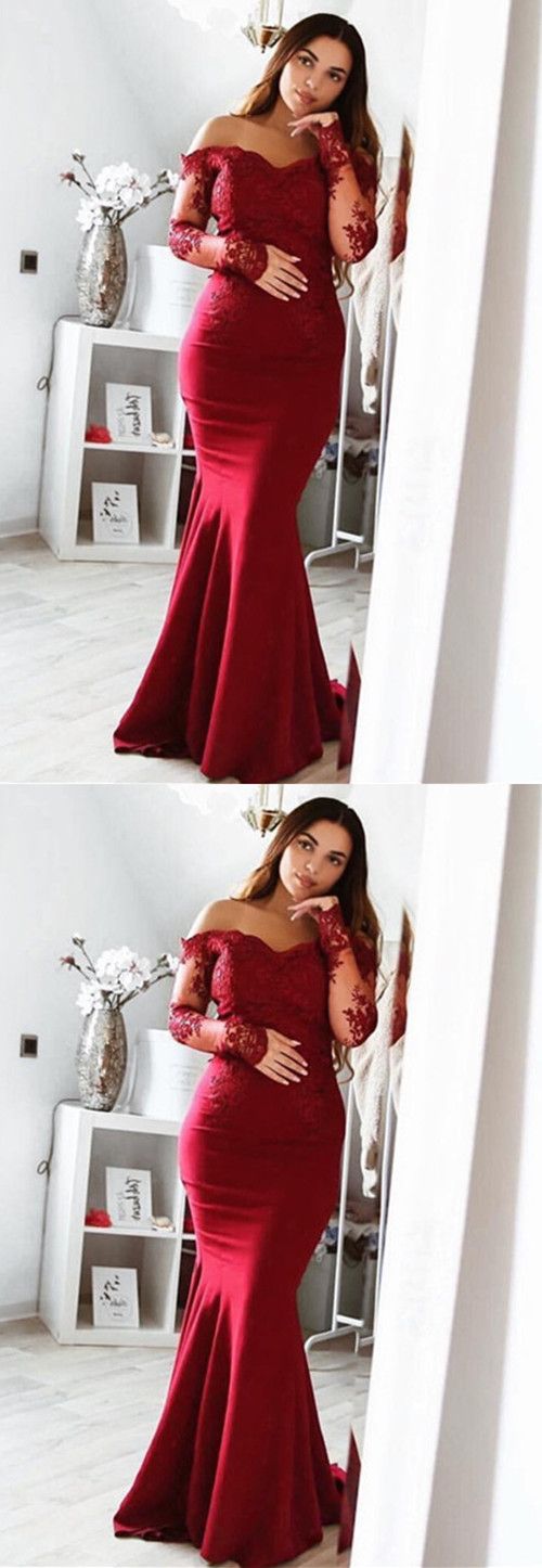 burgundy prom dresses,burgundy evening gowns,burgundy prom dress,long sleeves bridesmaid dress,off the shoulder evening gowns
