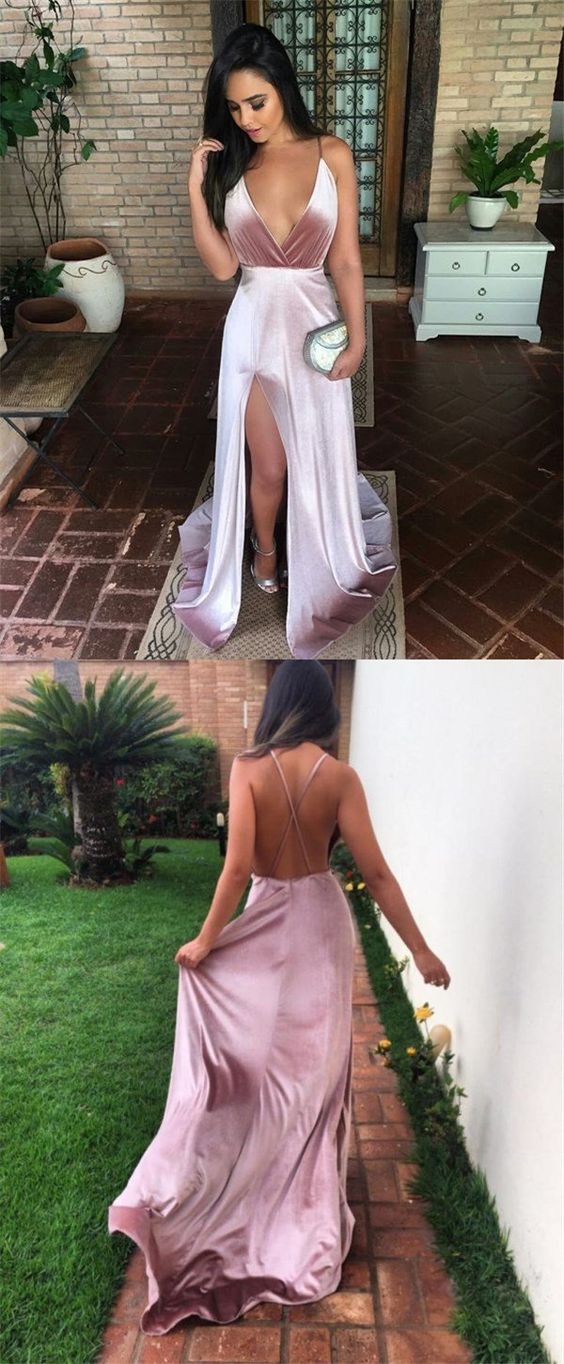 Charming New Sexy Simple Fashion Prom Dresses, Modern Slit Spaghetti Straps prom dress