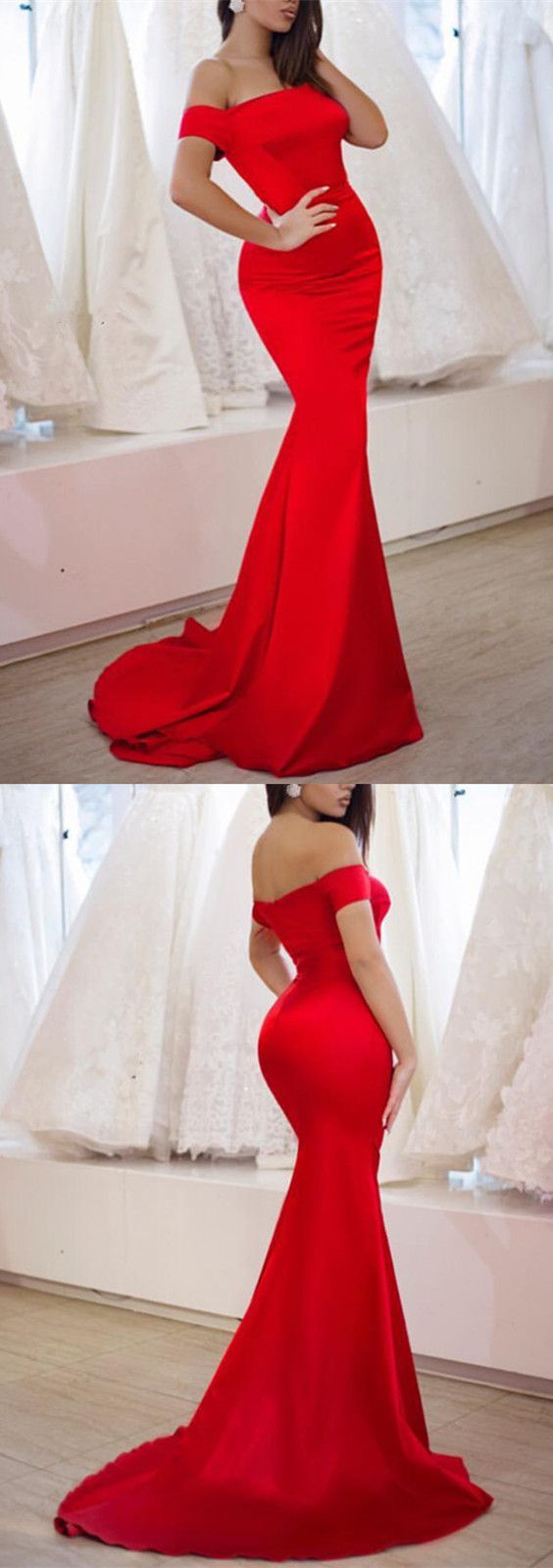 Red Mermaid Off the Shoulder Prom Dresses Sleeveless Satin Zipper Back Evening Formal Gowns