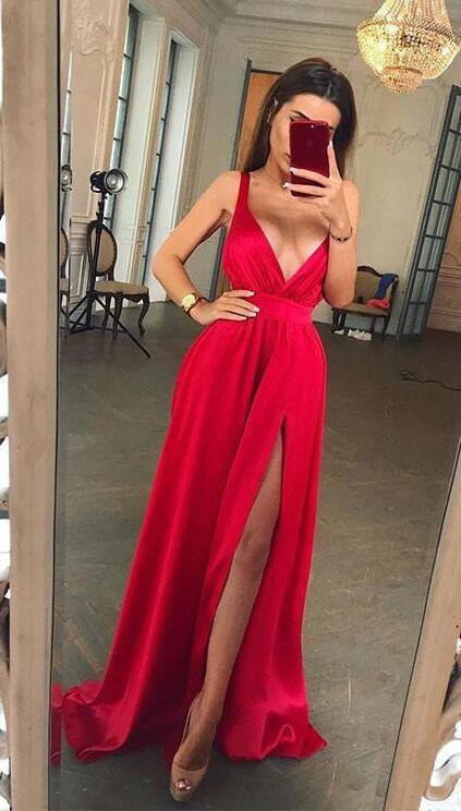 Sexy A Line Prom Dress with Slit, Long Evening Dress, Red Prom Dresses,Party Dress,Charming Prom Dress