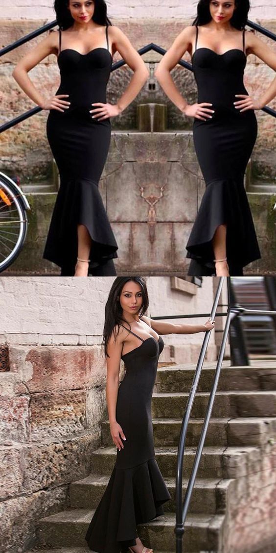 mermaid black evening dresses, fashion simple gowns split prom dresses