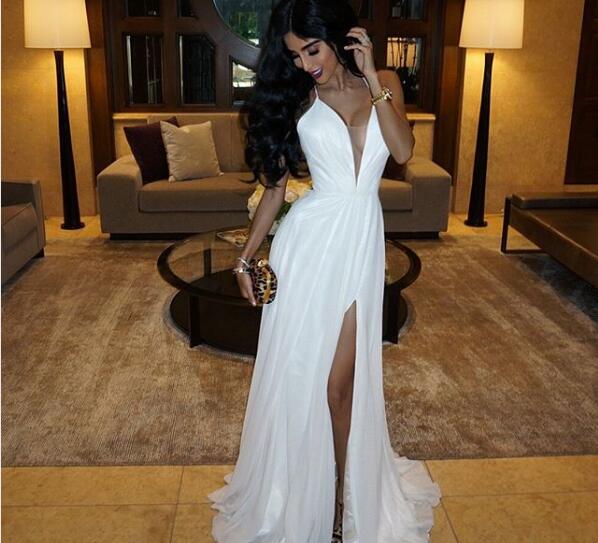 Sexy Ivory Prom Dress, Deep V-neck Prom Dress, Chiffon Long Prom Dress