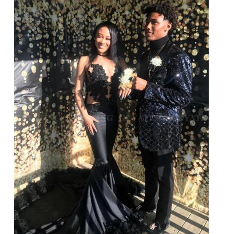 Sexy Mermaid African Prom Dress with Feather Sheer Lace Halter Black Girls Graduation Party Dress Evening Vestidos